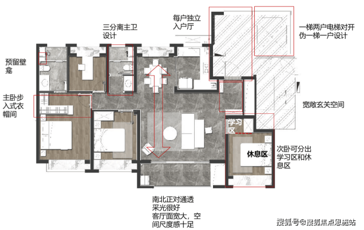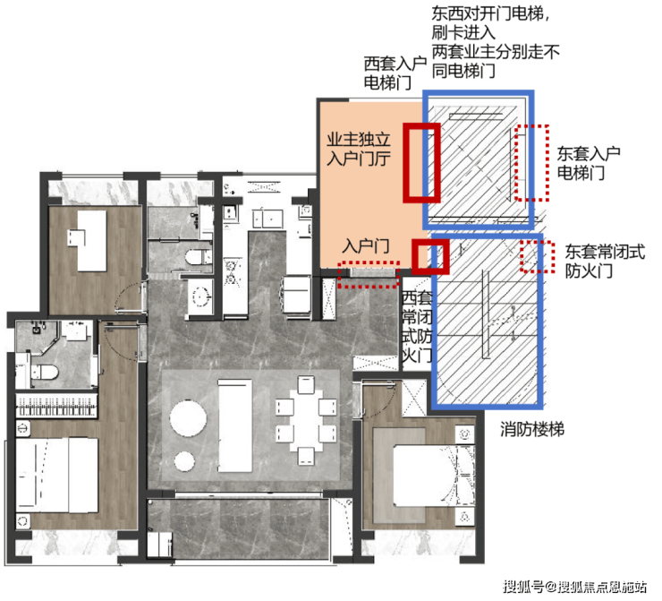 森兰·航荟名庭将原本1梯2户的设计做成了类1梯1户